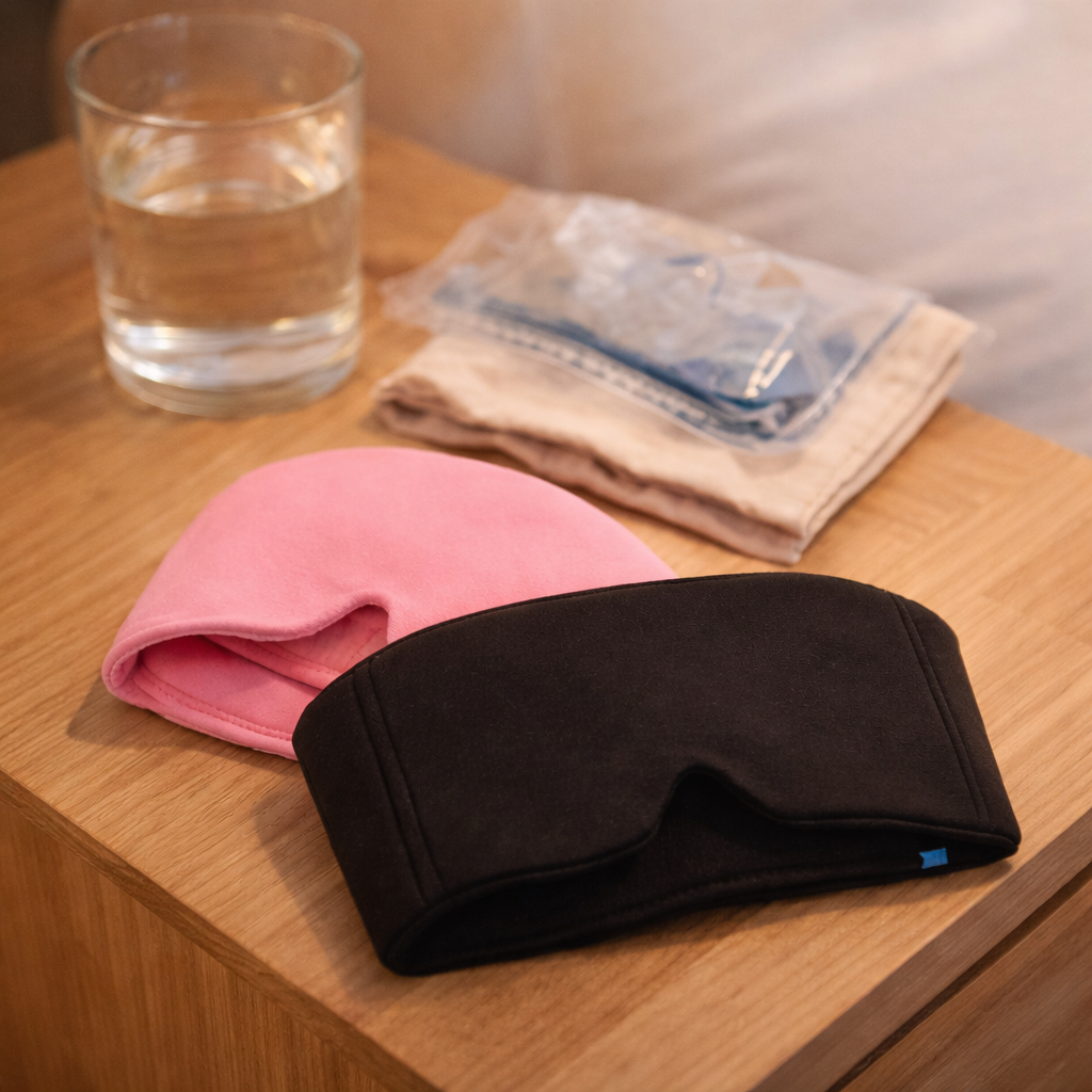 Комбинация от студ/топлина + нежна компресия + комфорт за очите — идеална за релакс у дома.